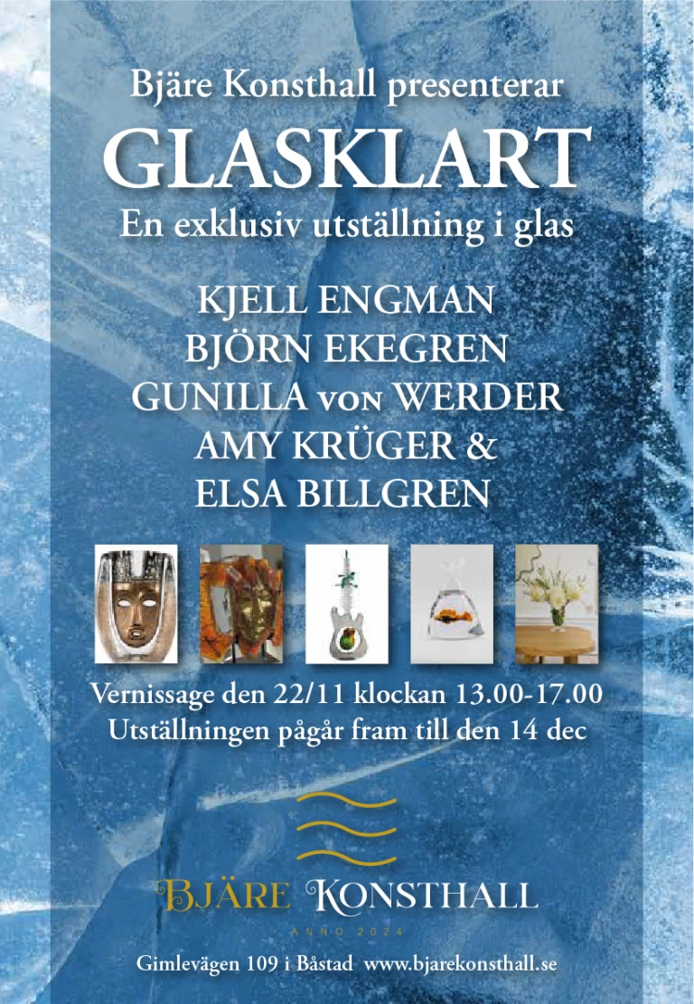 Samlingsutställning i glaskonst som samlar verk från några av Sveriges och Europas största glaskonstnärer. Vernissage 22 nov. Fem glasklara skäl…