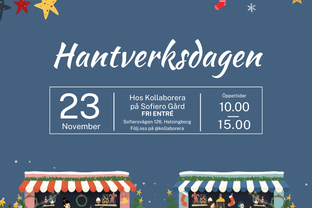 Den 23 November arrangerar vi åter vår fina hantverksdag. En dag där vi hyllar kreatörer för deras entreprenörskap och kreativitet. Som besökare hittar du lokala hantverkare och personliga julklappar till nära och kära. Det är gratis inträde så ta med vänner och familj, eller kom själv och heja på alla kreatörer som tillverkar med hjärta och passion.