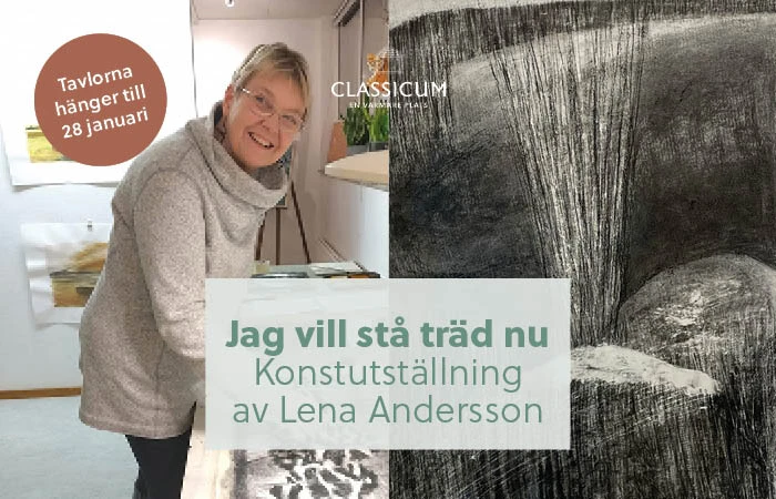 Under hösten och vintern visar vi kol- och tuschteckningar av konstnären Lena Andersson, inspirerade av naturen och diktsamlingen ”Jag vill stå träd nu” av poeten Anne-Marie Berglund. Verken gestaltar årstidernas förändringar och människans strävan efter frihet och reflektion. En utställning för alla som uppskattar grafiskt uttryck och poetisk konst.